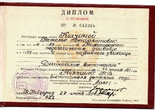 среднее-специальное: Нижегородское педагогическое училище по специальности "Дошкольное воспитание"