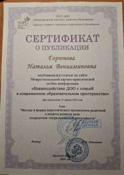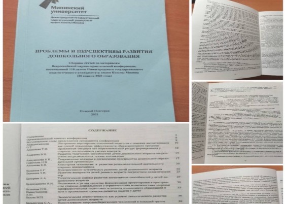 Нижегородский государственный педагогический университет имени Козьми Минина в сборнике статей и материалов "Проблемы и перспективы развития дошкольного образования" с статьей "Современные подходы к организации пространства дошкольной образовательной организации"